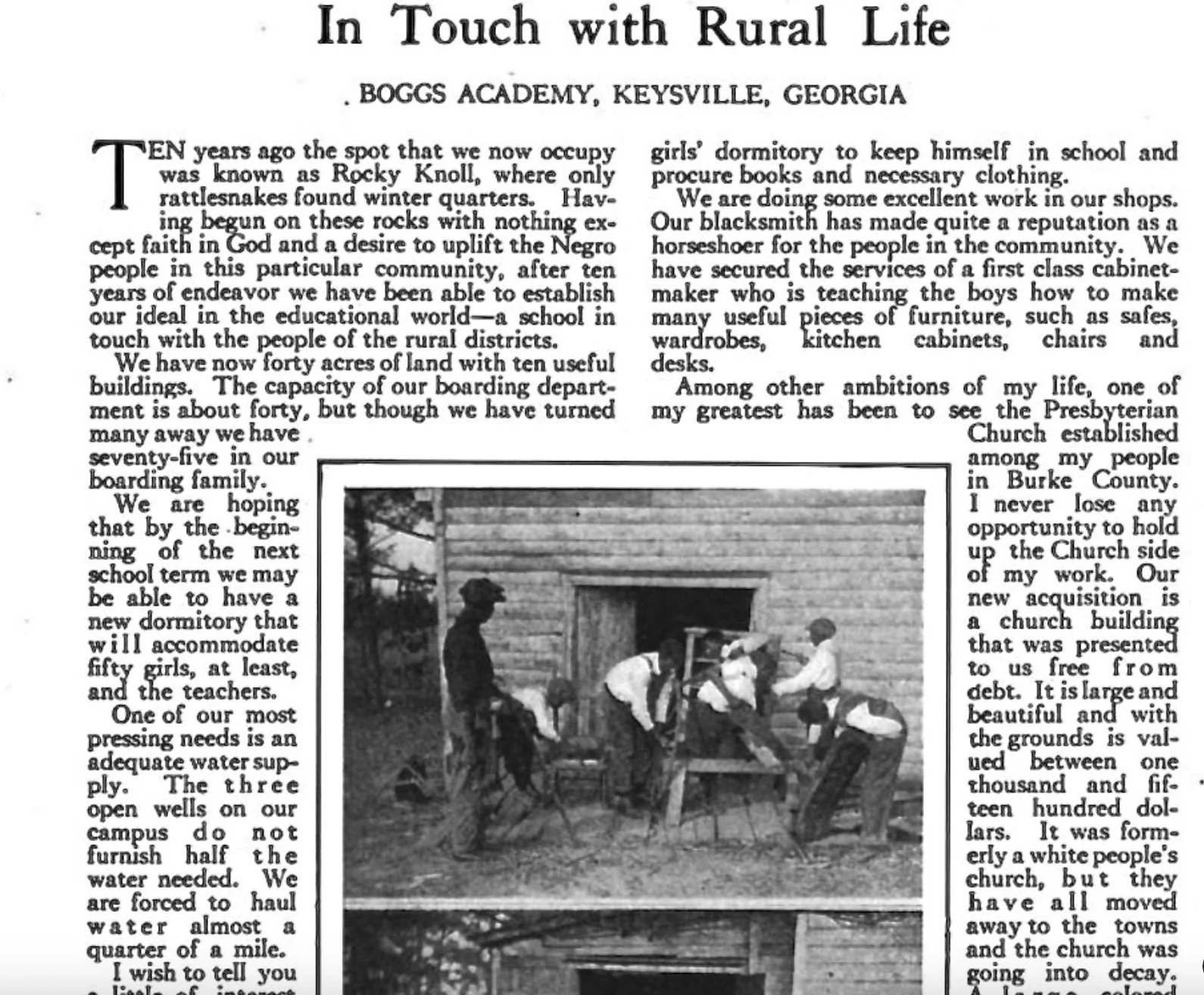 By 1940, the boarding population was steadily growing, and in 1955 the school developed three tracks: general, commercial, and vocational education. Extracurricular activities included athletics, the a cappella choir, newspaper, photography, science club, and Boy Scouts. The “Boggs Program” consisted of four parts—study, worship, work, and play—built on the principle of Christian Purpose, Preparation, and Performance. The Boggs student body originally came from the rural sections of Georgia and were both “unchurched and unschooled,” but in time, students came from other parts of the state and other states also. Ninety-five percent of the graduates went on to colleges, which ranged from Ivy League schools such as Dartmouth College to Morehouse in Atlanta and Howard University in Washington, D.C.